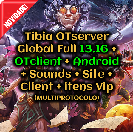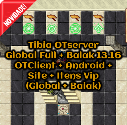 + Mounts System Client OLD (DLL) + Items, Monsters, Outfits and Mounts 13x + New Spells + Daily Reward + Exercise Weapons + Autoloot System + Training Dummy + EXP Scroll + Party Shared + Imbuiment System + Prey System + Char Bazaar + Hunted System + Trainers Offline + Trade Offline + Creature Boost + Loot Boost + EXP Boost + Level Reward + Perfect Task System + Cast System + War System + Top Frags + Shop Guild + Reward Exercise + Roulette System + Eventos Automáticos + Castle War + Castle War + OTClient + Client Mobile + Site + Clients + Editores.