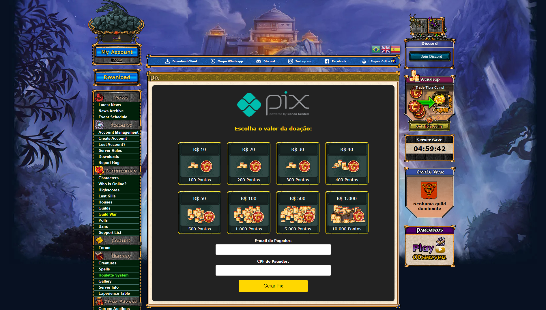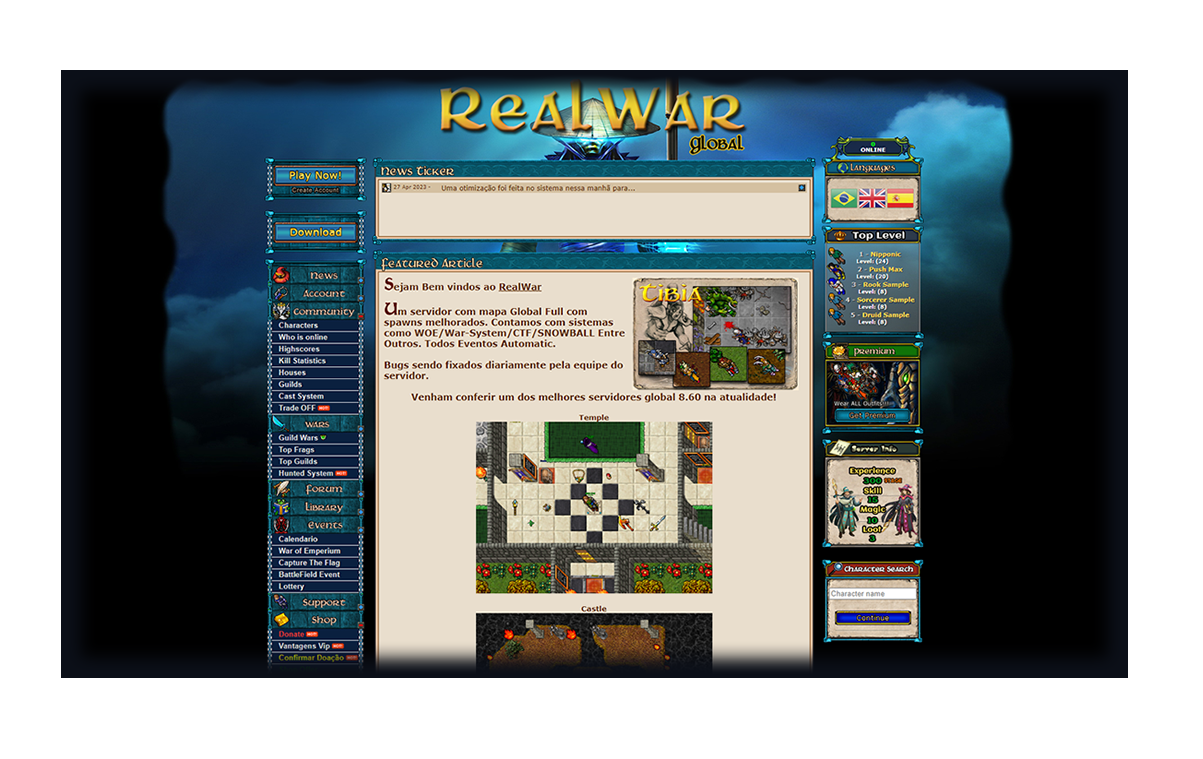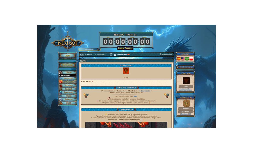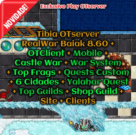 OTClient + Mobile + Castle War + War System + Top Frags + Quests Custom + 6 Cidades + Yalahar Quest + Top Guilds + Shop Guild + Site + Clients