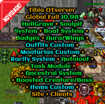 Soulpit System - Boat System - Badges + Aura/Wings + Outfits + Montarias + Rarity System + Autoloot + Task Module + Ancestral System + Boosted Creature/Boss + Items Custom + Site + Clients