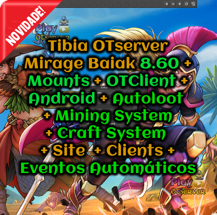 Mounts + OTClient + Android + Autoloot + Mining System + Craft System + Site + Clients + Eventos Automáticos