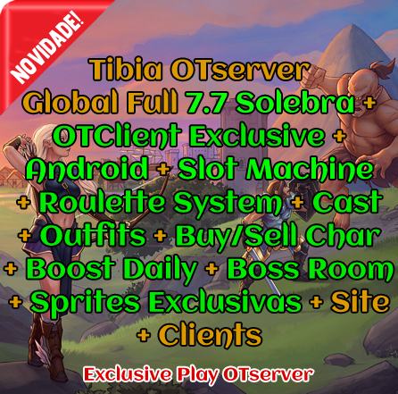 OTClient Exclusive + Android + Slot Machine + Roulette System + Cast + Outfits + Buy/Sell Char + Boost Daily + Boss Room + Sprites Exclusivas + Site + Clients
