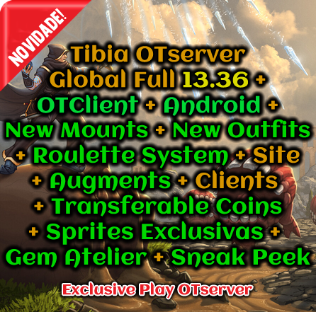 OTClient + Android + New Mounts + New Outfits + Roulette System + Augments + Transferable Coins + Gem Atelier + Sneak Peek + Castle War + Sprites Exclusivas + Site + Clients