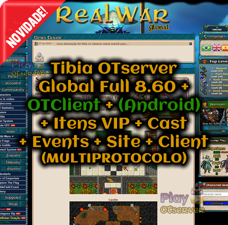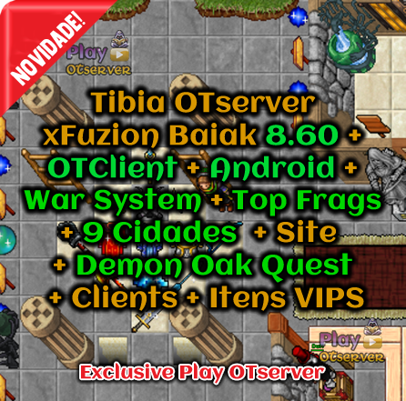 OTClient + Android + War System + Top Frags + 9 Cidades + Demon Oak Quest + Site + Clients + Itens VIPS
