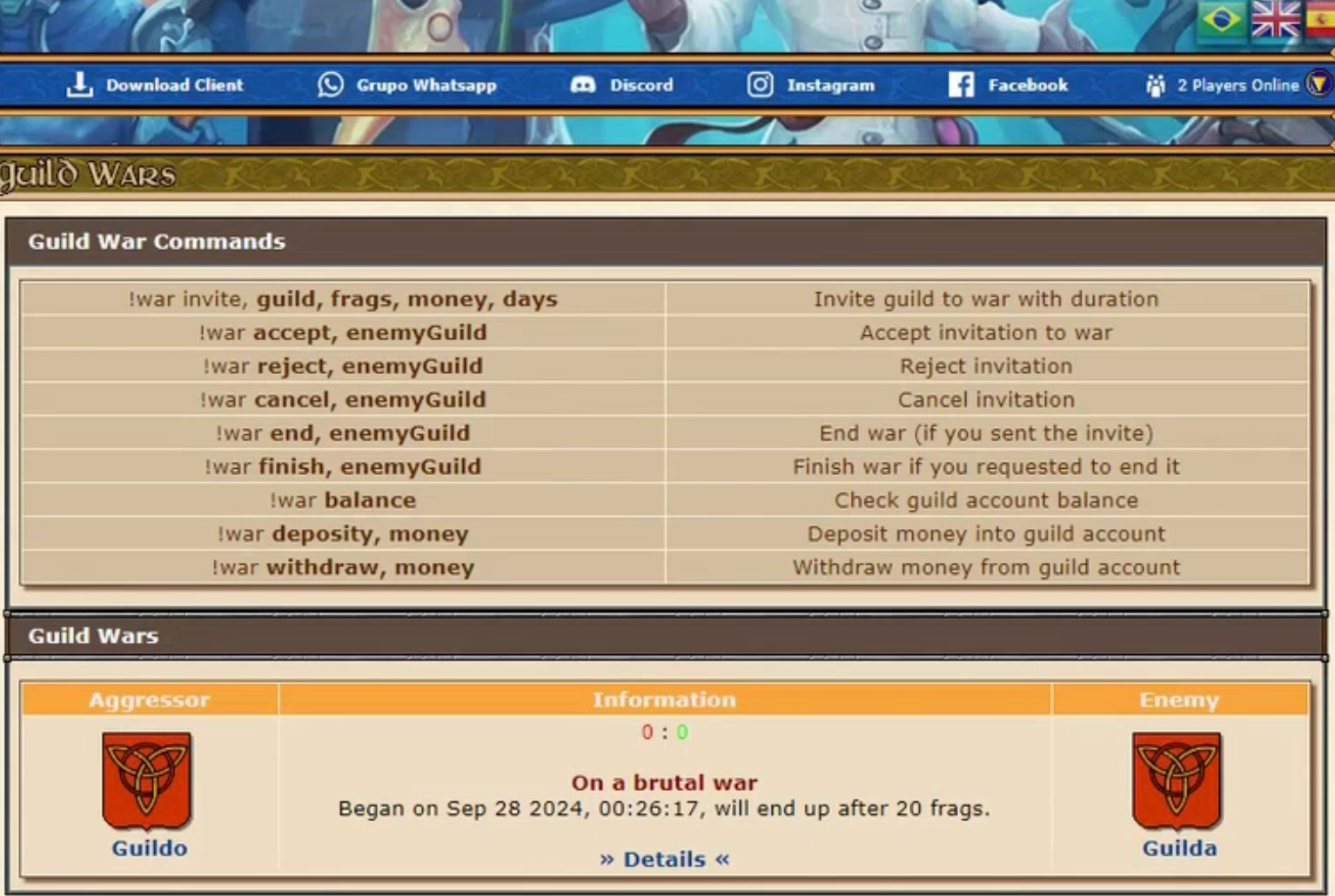 Sistema de guerra entre guilds, permitindo declarar, gerenciar e registrar batalhas entre equipes dentro do servidor. - Compatível Com Todas As Versões